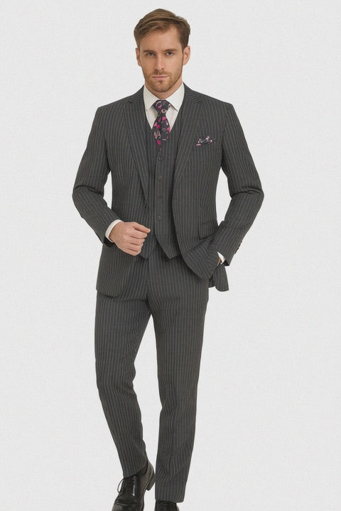 1920s Men's Suit – Bold Pinstripe Wide Suit in Grey – 3-Piece Luxurious Wool Feel Suit