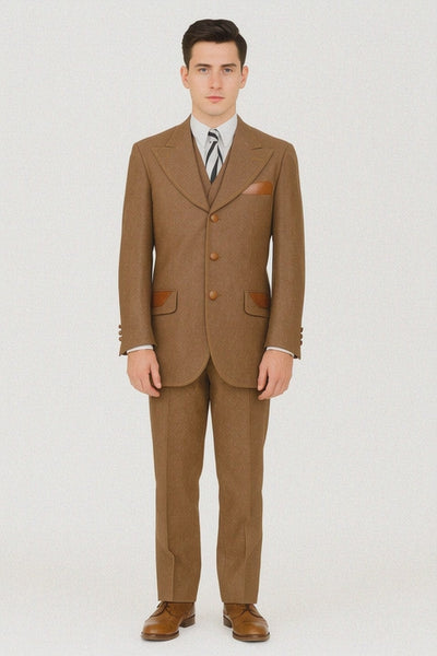 Crafted from high-quality cotton fabric, this suit delivers breathable comfort, making it suitable for year-round wear. The 3-button peak lapel blazer, matching vest, and tailored pants complete an effortlessly stylish look with rugged elegance.