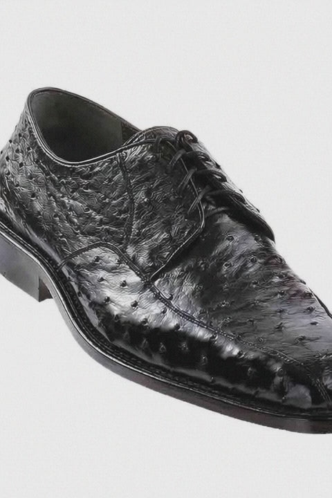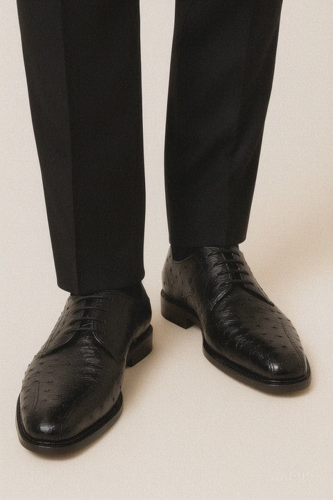 In conclusion, the Los Altos Black Full Quill Ostrich Bicycle Toe Men's Lace Up Shoes embody the essence of refined masculinity and luxury footwear. They are perfect for men who demand elegance, comfort, and durability in their wardrobe. Every step you take in these shoes tells a story of craftsmanship, prestige, and sophistication. With their distinctive ostrich leather texture, modern design, and exceptional comfort, these shoes redefine what it means to walk in style and confidence.
