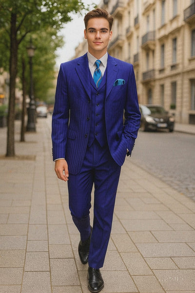 Make a bold impression with this Navy Blue Men’s Shiny Tonal Stripe Fashion Suit, designed for those who appreciate style, comfort, and sophistication. Featuring a 4-button single-breasted jacket with a sleek tonal shiny stripe pattern, this suit exudes modern elegance while maintaining a classic appeal.