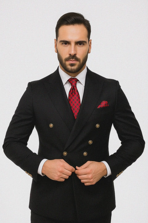 Mens Classic Wool Double Breasted Homecoming Suit in Black