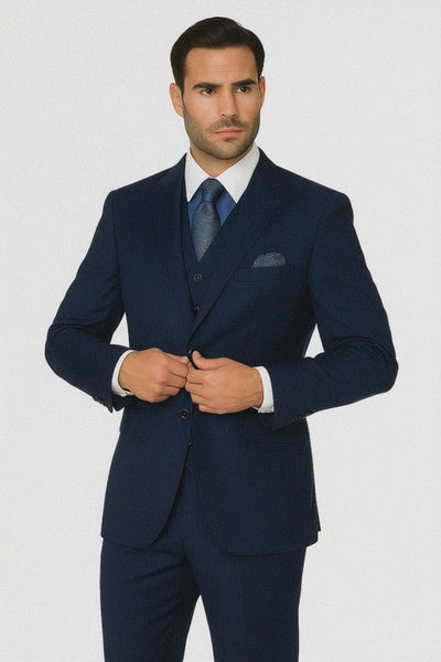 Mens Classic Fit Pleated Pant 2 Button Wool Suit in Indigo Blue