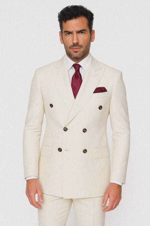 Make a lasting impression with timeless sophistication. The Mens Designer Modern Fit Double Breasted Wool Suit with Gold Buttons in White is a true symbol of elegance, power, and refined taste. Crafted for men who lead with confidence and dress with purpose, this white wool suit blends classic tailoring with modern design details for a statement-making look that never goes unnoticed.