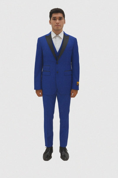 Make a bold entrance at any special event with this Men’s Royal Blue 2-Button Peak Lapel Vested Prom Tuxedo, designed for modern style and flawless fit. Featuring a luxurious wide black satin peak lapel and matching vest, this tuxedo delivers a sharp, upscale look perfect for proms, weddings, galas, and red-carpet affairs. Crafted from premium rayon fabric in a show-stopping royal blue finish, it offers both comfort and standout appeal.