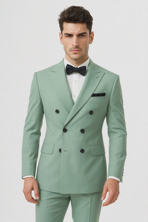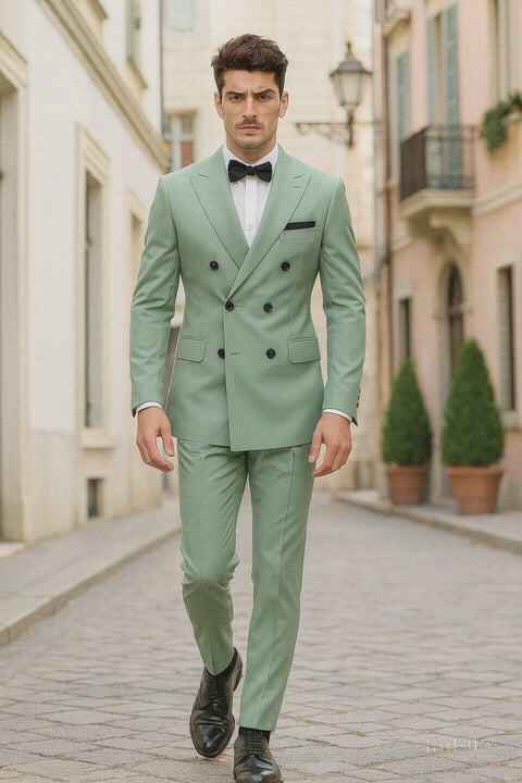 Step into refined sophistication with this Mens Sage Green Double Breasted Suit, a perfect fusion of timeless tailoring and modern flair. Crafted from premium sage green fabric, this suit stands out for its unique color tone—soft yet commanding—making it a versatile choice for weddings, galas, or upscale social events.