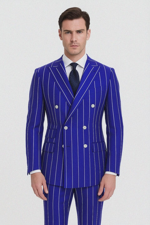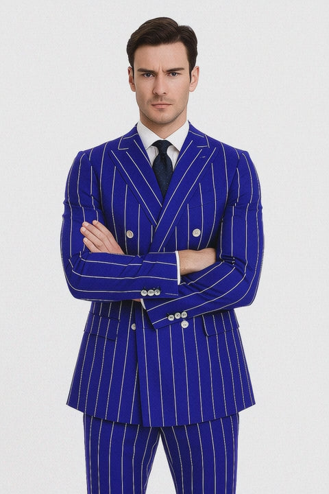 Royal Blue Pinstripe Suit – Gangster Suit – 1920’s Double Breasted Suit