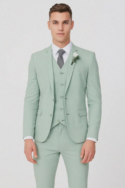 The soft mint green hue offers a refreshing alternative to traditional black or navy suits, making it perfect for spring and summer weddings. It’s a versatile color that pairs beautifully with neutral tones and floral accessories, bringing lightness and vibrancy to the occasion. Whether the setting is a garden ceremony, beach wedding, or elegant reception hall, this suit adds a contemporary yet timeless flair to your celebration.