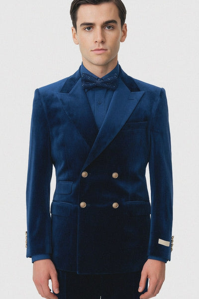 Make a commanding impression with this Royal Blue Velvet Double Breasted Slim Fit Suit, designed for those who appreciate refined elegance and modern tailoring. The luxurious velvet fabric adds depth and sophistication, while the slim fit cut ensures a sharp, flattering silhouette.